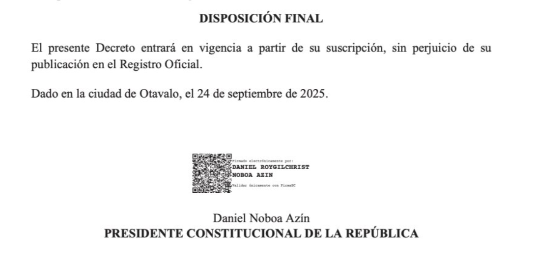 En la madrugada de este martes, pocas horas después del dictamen de la Corte Constitucional, el presidente Daniel Noboa firmó el Decreto Ejecutivo 155, con el que ajusta el procedimiento para viabilizar la convocatoria a la Consulta Popular.