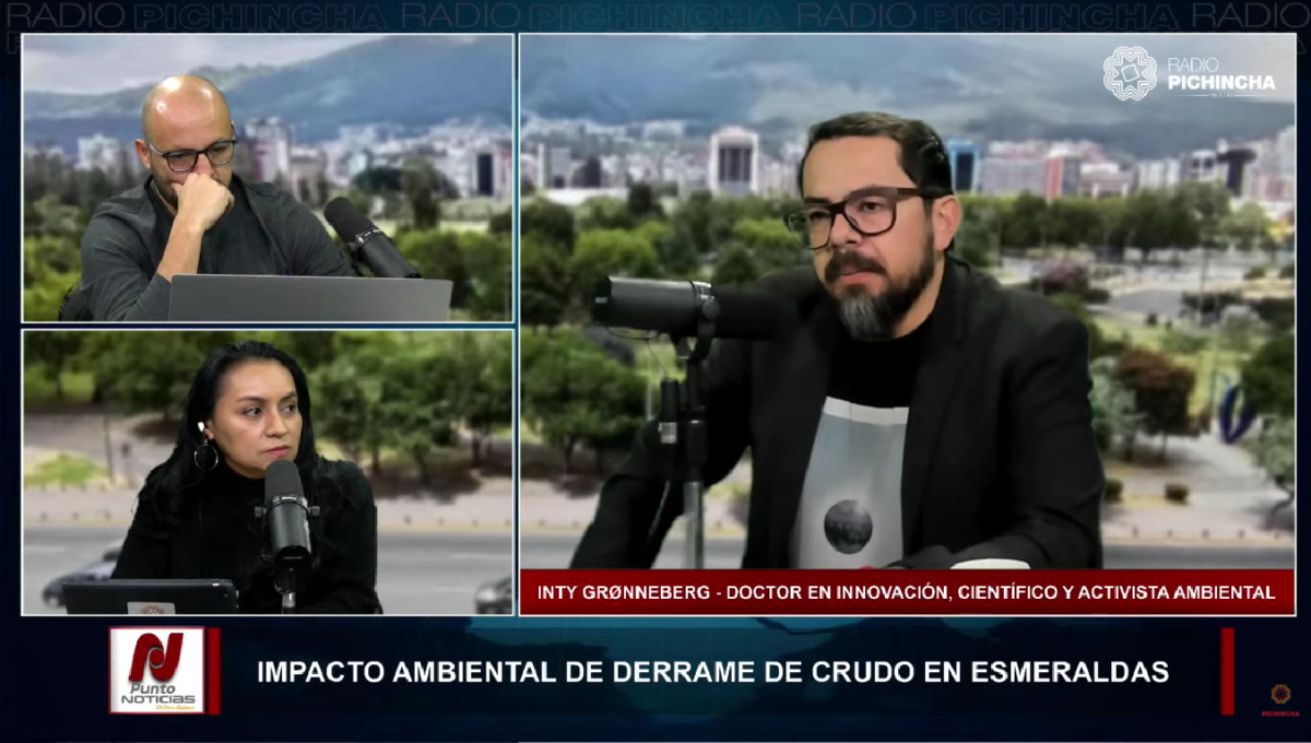 El Dr. Inty Gronneberg, científico, activista ambiental y especialista en innovación, condenó enérgicamente la falta de respuesta del gobierno ante el desastre petrolero ocurrido en Esmeraldas, que podría convertirse en el mayor derrame en la historia de Ecuador. En una entrevista exclusiva para Radio Pichincha, Gronneberg criticó la actitud del gobierno de Daniel Noboa, quien además de su papel presidencial, está en campaña electoral mientras el país enfrenta una de las peores catástrofes ambientales de su historia.