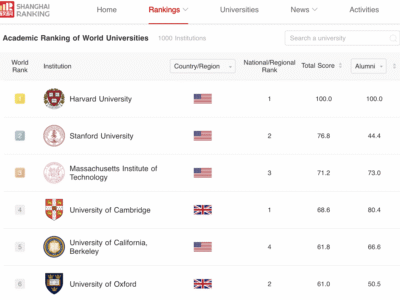 China y Taiwán tienen por primera vez más universidades que EE UU en los 500 primeros puestos del ‘ranking’ de Shanghái, la clasificación... Read More
